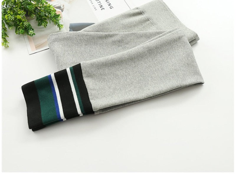 Autumn Harajuku Stripes Stitching Stretch Leggings fitness Feminina Winter Elasticity Fitness Legging Stretchy Trousers