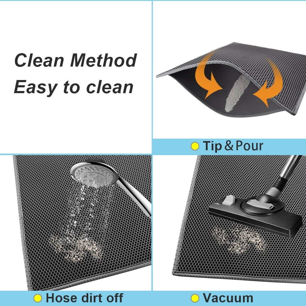 Bottom layer is waterproof and also slip-resistant which will not allow any liquid to go through and easy to move. If you have a cat vomit on the mat, you can hose it off, easy to clean and be dry. Protect your hardwood floors and carpets from nasty urine stains.Prevent the cat's urine from getting everywhere.