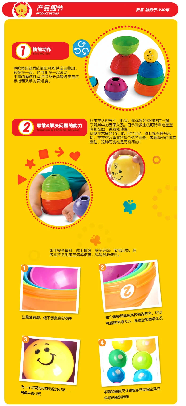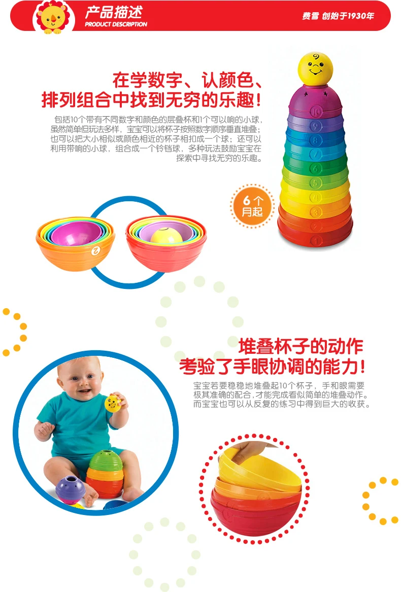 Fisher-Price Brilliant Basics Stack & Roll Cups Children Educational Toy Pierwsze Klocki Malucha K7166 For Kid Birthday Gift