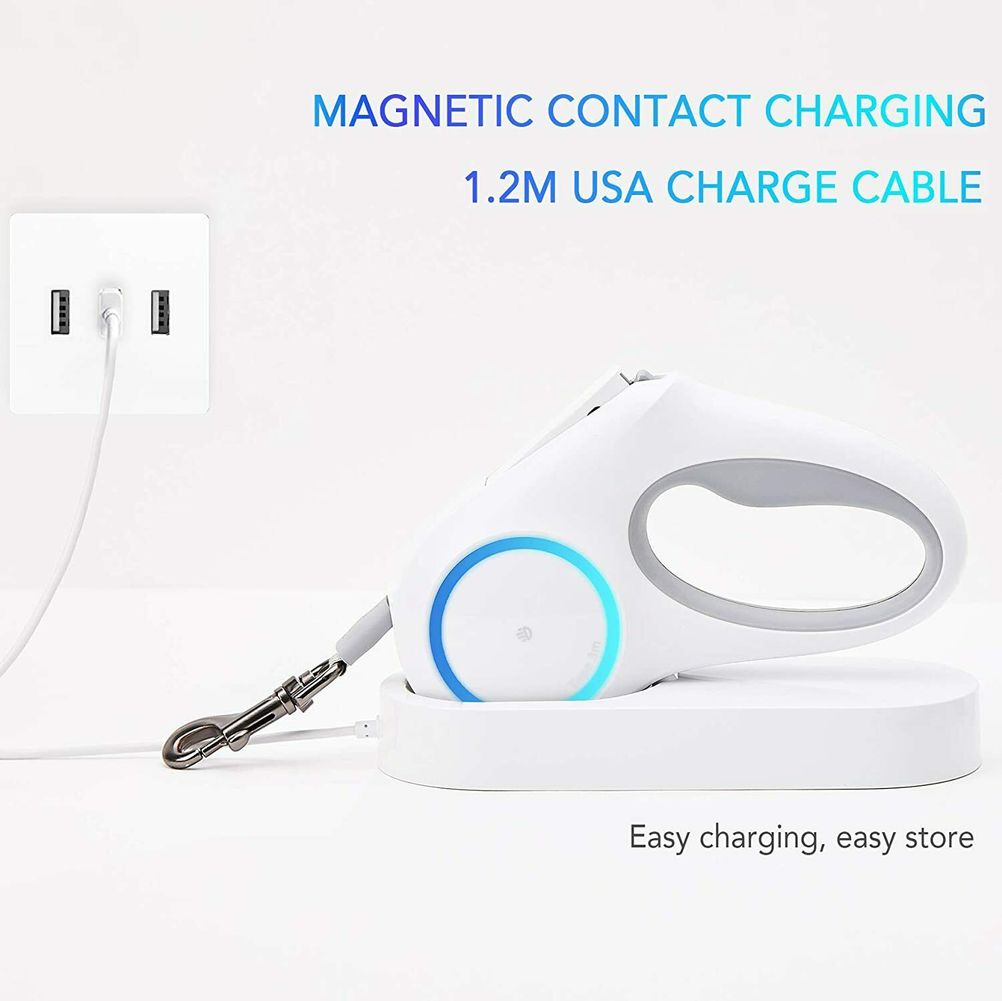 2. USB RECHARGEABLE & MAGNETIC CHARGING DOCK: Just place the lighted dog retractable lead onto the charging base, it will be inducted to the charging area instantly. PEKIT creative design provides conveniently charging and guarantees the durability of the power dock. (USB plug not included).