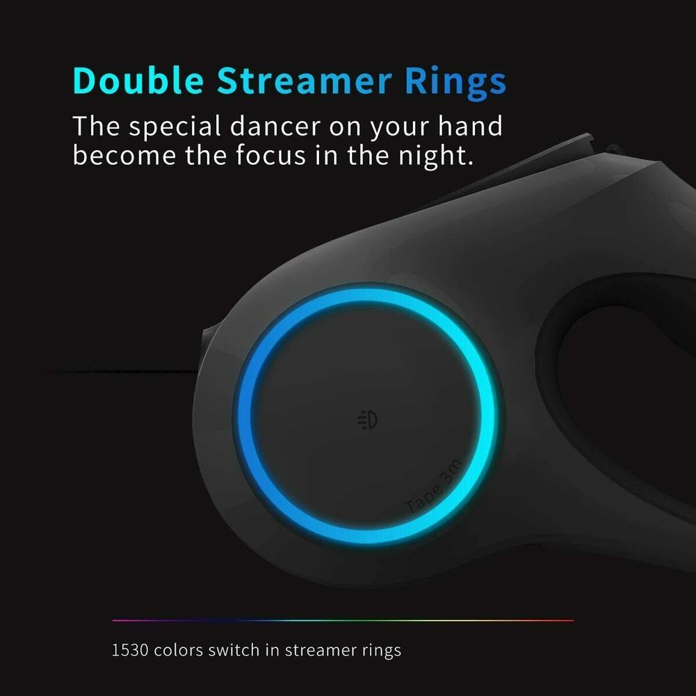 1. A RERACTABLE PET LEASH YOU WILL NEVER REGRET HAVING: 1530 RGB flowing light and color define your walking fashion at night specially; Color switching just with simple finger-sliding; and the front highlight LED spot lamp is visible within 5m when walking a dog at night. Not only secure, but also eye-catching. Enjoy your dog walking outdoors now.