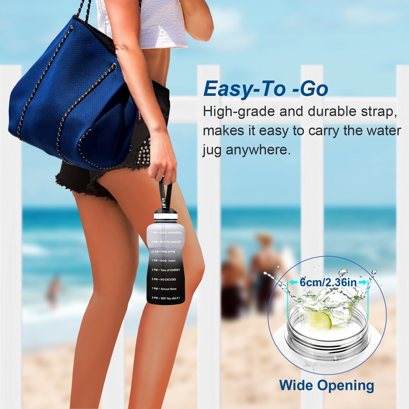 With unique inspirational quote and time marker Gallon water bottle, this bottle is great for measuring your daily intake of water, reminding you stay hydrated and drink enough water throughout the day. A must have for any fitness goals including weight loss, appetite control and overall health.