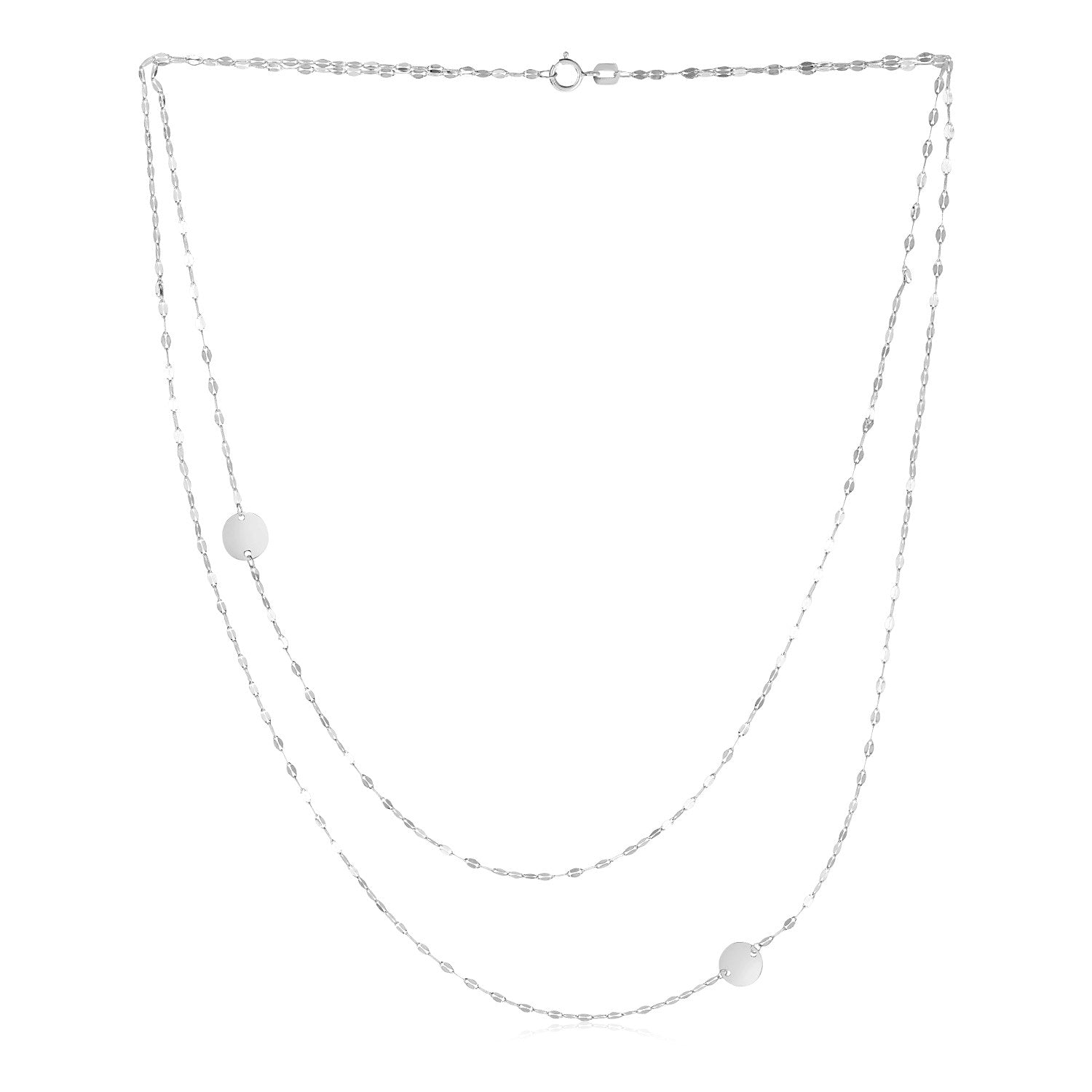 Two strands of shiny 14k white gold links get a pop of contrast and modern shine from a single polished disc. Necklace is 17 inches long and closes with a spring ring clasp.