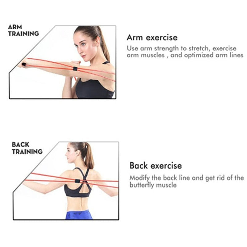 TPE 8 Word Fitness Yoga Gum Resistance Rubber Bands Fitness Elastic Band Fitness Equipment Expander Workout Gym Exercise Train